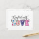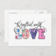 This postcard features elegant script for the 'Crafted with' portion of text, while 'LOVE' has been crafted with my love :) in photoshop using colorful patterns, buttons, bows and stitching effects. Choose any lighter background color to suit. Search ID193 to see other products with this design.
