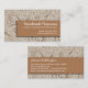 A brown, subtly-polka dotted tab, reminiscent of kraft paper is place on top of a cream floral patterned background, giving an illusion of something handmade. The panel is repeated on the reverse for further business information. This is a unique card for a craft shop or an Etsy seller. Available with matching products.