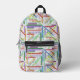 This personalized printed backpack has a crafting sewing word search pattern with a vintage news paper printing texture in lots of bright colors. You can make the pattern on this backpack larger or smaller. Great gift for anyone that loves crafting, sewing or word search games.