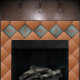 The Craftsman Dragonfly tile is designed for fireplaces, kitchens and bathrooms in Craftsman Bungalows. This tile is also appropriate in cabins, vacation homes and Lodges. The Background is verdigris copper turquoise. The Dragonfly is Turquoise and metallic copper. The outside frame is brown and looks a little like wood. This Comes from Oregon tile Maker Fay Jones Day