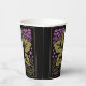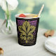 These paper cup features Leslie Sigal Javorek's adaptation of a classic American Craftsman pattern, with a large single mossy green grape leaf, umber shaded vines, surrounded by masses of grapes in orchid gradients, all set on black for dramatic flair. Perfect for your next Wine Tasting Party!