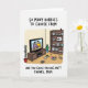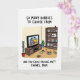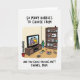 This card shows a cozy living-room scene in soft pastels and warm earth tones, where a television on a dark wooden console displays two simple cartoon figures leaning close as they work on a colorful craft together ❤️. To the side, a tall shelving unit is packed with everyday treasures, including stacked dishes, a classic sewing machine, and jars filled with baking or crafting supplies that hint at shared routines and inside jokes. On the floor, the mess of active hobbies feels affectionate rather than chaotic, with a plate of small dark round treats, a few scattered tools, and a bowl of bright little pieces as if someone just paused mid-project. A slim potted plant near the screen adds a calm touch, balancing the busy corner with a gentle, homey feel 🌼. Across the top, large hand-drawn lettering reads “SO MANY HOBBIES TO CHOOSE FROM” in a dark ink that stands out against the light background. Near the bottom, a second line in the same style says “AND YOU CHOSE RAISING ME?? THANKS, MOM,” centered so it frames the scene like a funny, affectionate caption. The overall look stays simple and cartoon-like, with rounded shapes and friendly details that make the room feel lived-in and lovingly shared. The shelves show layered mugs and bowls, the sewing machine sits mid-level, and small containers and craft bits are tucked into the open spaces around them.