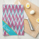 Cranberry and Teal iKat ZigZag Pattern Kitchen Towel