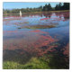 View of leftover cranberries not yet harvested from a bog on a cranberry farm in Long Beach, Washington. Photo taken October 2017.