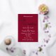 Simple style wedding invitation on a trendy, cranberry red color background with "The Wedding" printed in stylized script with foil color of your choice. Edit name, date, location, etc., with your own information printed in white lettering. Designed to coordinate with our Cranberry Red Simple Style Wedding collection.