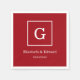 Cranberry Red White Framed Initial Monogram Paper Napkins