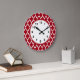 Cranberry Red White Moroccan Quatrefoil Pattern #4 Large Clock