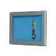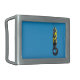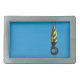 Crane hook with yellow and black stripes hanging rectangular belt buckle