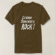 My 11 yo wore adult XL (5’7” 165#). The 8yo is small framed. She wore adult small and tied it in the back. Grandma wore adult large with long sleeve shirt underneath. Tall girl adult medium. Dark haired male adult large. Good quality dark Heather gray, Gildan brand shirt. -it was next up from basic choice and cost about $20 per shirt. Not too thick or thin. Washed and dried well, no major shrinkage. Not see-through. Can wear a bra under it fine. Screen print is just as shown and well done, front and back.