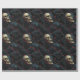 Discover hauntingly beautiful Halloween wrapping paper featuring a digitally crafted macabre scene. This design showcases two intertwined human skulls—one aged with visible cracks and the other partially cropped—set against a dark, eerie backdrop. Twisted barbed wire forms a cage-like structure around the skulls, while thorny blue and black vines enhance the sense of captivity. Bright red berries provide striking contrast, and subtle white star-like accents add an ethereal glow. Perfect for spooky celebrations, this unique wrapping paper blends dark artistry with vibrant details for a captivating Halloween presentation.