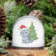 Cranky Grey Tabby Cat Red Hat Christmas Tree Snow Globe