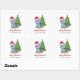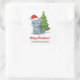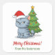 Cranky Grey Tabby Cat Red Hat Christmas Tree Square Sticker
