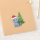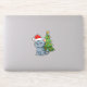 Cranky Grey Tabby Cat Red Hat Christmas Tree Sticker