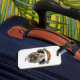 Get off my luggage! You can hear this cantankerous 75 meter phone operator bellyaching all the way from the other end of the baggage carrousel. His terrible disposition was not improved by nothing to eat but a package of gluten-free kale chips in steerage between Dubai and JFK and he's no mood for anyone so much as jostling your bag, never mind walking off with it. Handy ID/business card slot on the back, just so everyone knows you're a Player and as well as a Sport.