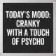 "Today's mood: Cranky with a touch of psycho" funny quote.