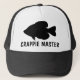 You can have a lot of fun personalizing this great crappie fishing hat template by replacing the existing text to reflect your personality. Some ideas would be "Crappie Kid" "Crappie Master" "Crappie Slayer", "Crappie King", "Crappie Queen", etc. Or, if you would rather receive your merchandise with just the Crappie silhouette graphic, then just delete the text all together. If you or someone you know loves to go Crappie fishing, then this custom crappie fishing baseball cap would make the perfect gift!