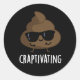 Craptivating Funny Cool Poop Pun Dark BG Classic Round Sticker