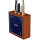Keep your desk neat and tidy with a customized desk organizer. Showcase your favorite artwork, photos, or text on the front and back of this mahogany wood finished desk piece. Great for keeping clutter contained!