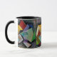 Mod retro looking abstract fine art painting in acrylic that reproduces on this mug as though it were a tapestry because the weave of the canvas shows. Very interesting effect. Part of a series of paintings.
