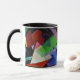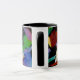Mod retro looking abstract fine art painting in acrylic that reproduces on this mug as though it were a tapestry because the weave of the canvas shows. Very interesting effect. Part of a series of paintings.