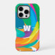 Big arcs of color reach up and crash over each other in this beautiful abstract art design. Aqua, yellow, orange, green and blue mix in harmonious and brilliant splashes of color. Add your initial for a customizable monogram design.