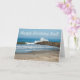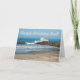 Waves crash on the rocks of a jetty on a California beach. That's the cover of this greeting card for dads. The text inside is a template. It speaks of how fathers stand fast against the tide of daily problems. There's a picture of the beach inside. It's a template field too. You can upload your own.