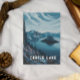 A stunning illustration depicting Crater Lake National Park. A vast, deep blue lake rests within a volcanic caldera, surrounded by snow-capped mountains. Wispy clouds float above the breathtaking vista, adding a touch of serenity.