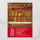 This rustic red brown design features a rustic wood background with string lights and crawfish graphics. This invitation is great for engagement parties, but the text can also be customized for birthdays, weddings, family reunions, and any other party you may have a crawfish, crayfish, crab, or lobster boil at. Enjoy your crawfish and seafood boil!