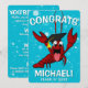 This graduation crawfish is perfect for your next crawfish, shrimp, lobster or general seafood boil! He's ready to party with a bubble background, and text that is customizable to your event. Get the cajun corn and potatoes ready, kick back and enjoy the party in style with your family and friends.