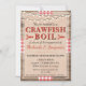This rustic style design features a wood background with red and white ribbon. On top of that is a burlap texture with a cartoon illustrated crawfish. The red and black serif and handwritten script font is all customizable to your event, whether it is a crawfish boil, lobster, seafood, or fish boil. Celebrate your engagement, birthday, graduation, or any event in style with this invitation!