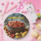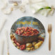 Paper party plates with image of crawfish cooking with potatoes and corn for a summer crawfish boil.