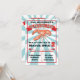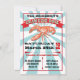 Crawfish boil invitations done in a poster style with an illustration of a crayfish or crawfish, fun typography and banners on a Sunburst background. Hand drawn illustration by McBooboo.
