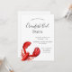 An elegant invitation for a nautical coastal by the sea summer party, beach party or seafood party. A white background and a large red lobster as decoration. Templates for your party details, information.