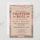 This rustic style design features a wood background with red and white ribbon. On top of that is a burlap texture and red and black serif and handwritten script font which, is all customizable to your event, whether it is a crawfish boil, lobster, seafood, or fish boil. Celebrate your graduation, birthday, engagement, or any event in style with this invitation!