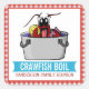 This cute crawfish boil stickers features an illustrated cartoon crawfish sitting in a pot with corn and red onion. In the background is a picnic tablecloth that is perfect to match your seafood party. This design is great for family reunion invitation seals and party favors, but the text can also be customized for birthdays, weddings, and any other party you may have a crawfish, crayfish, crab, or lobster boil at.