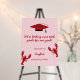 Welcome guests to your graduation celebration with this playful and stylish "We’re Boiling Over With Pride For Our Graduate" welcome sign! Perfect for a crawfish boil-themed graduation party, this bold sign features hand-drawn illustrations of cheerful crawfishes and a graduation cap, paired with a vibrant pink and red color scheme.
