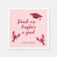 Add a pinch of fun to your grad party with these playful "Pinch Me – [Custom Name] is a Grad!" napkins! Perfect for a crawfish boil graduation celebration, these custom napkins feature red hand-drawn illustrations of crawfishes and a graduation cap, all set against a cheerful pink scribble-style striped background.