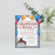 This blue and gold crawfish boil invitation is customizable to your special event. Featuring a teal background with gold pearls and crawfish, this design is perfect for your birthday, engagement party, graduation, or any event you maybe be hosting. The cartoon illustrated crawfish along with balloons on the front add an extra fun flair to the serif and handwritten script fonts. The word "crawfish" is also customizable to whatever "boil" you may be having, including seafood, lobster, crab, etc.