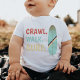Old vintage style surfboard illustration crawl walk surf baby t-shirt.