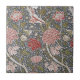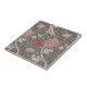 A decorative ceramic tile with the floral textile pattern by William Morris (1834-1896), Cray (c. 1883). Red and pink flowers on a dark gray background. Morris was a British artist from the Arts and Crafts movement.