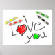 Simple childlike colourful crayon drawing of the expression I LOVE YOU with childs crayons scattered around the message. Image available on various gifts and products. Customize and choose your own background colour or add text if you need to.