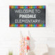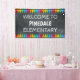 School welcome banner with row of crayons at the bottom and the top! Perfect for entry doors, door to office, or to hang at festivals, fairs and educational programs. See our classroom welcome doormats as well.