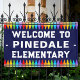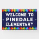 School welcome banner with row of crayons at the bottom and the top! Perfect for entry doors, door to office, or to hang at festivals, fairs and educational programs. See our classroom welcome doormats as well.