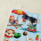 A Fun Beach Towel For The Pool or Beach Patterned In Cartoon Animals on A Blue Background.