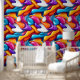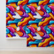 Elevate your space with this striking wallpaper, designed for lovers of bold maximalist style. This wallpaper features a captivating fusion of abstract, fluid shapes, this design bursts with electric blues, vivid oranges, deep purples, and crisp whites. The dynamic composition creates a sense of movement and depth, while its glossy finish adds a sleek, modern edge. Perfect for those who embrace vibrant colors and dramatic design, this wallpaper transforms any room into an energetic, eye-catching statement, infusing your space with personality and flair. generativecontent