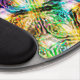 The plastic backing is nice and sturdy. The grippy pads underneath keep the mouse pad where I put it on my table. The pad the mouse sits on is cut well to fit the backing. The wrist pad is perfectly soft, supportive, and thick. I'm left-handed, and this mouse pad works just as well for me as it does for my right-handed friends. I'm the designer of HippieClecticHope products. I'm blown away by how well my intricate fractals turn out on the tangible items in the Zazzle Marketplace. This particular mouse pad ***appears*** like a 3D object... A mathematically-engineered rainbow black opal, inlaid under transparent fabric...