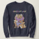 Embrace your inner feline fanatic with this hilarious and charming sweatshirt! The design features a joyful, blonde woman, the quintessential "Crazy Cat Lady," sitting comfortably in a chair surrounded by a veritable clowder of her beloved cats—some sitting, some snuggling, and one even perched playfully on her head! Above her, the phrase "Crazy Cat Lady" is displayed in colorful, bubbly, playful text, perfectly capturing the whimsical spirit of the design. Set on a dark navy background, this comfy crewneck is the ultimate statement piece for any devoted cat mom, making it a perfect gift for birthdays, Mother's Day, or just because.