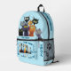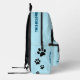 This fun backpack is for all the Crazy Cat People out there! There are groups of comical cats on the front and paw prints going up the sides of the backpack. It's set against a light blue background and all of the lettering is in a darker royal blue. The top of the pack says "This belongs to one crazy cat person". Personalize it with your name on the front pocket.