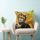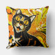 Colorful retro abstract portrait of a black cat for a cat lover in a colorful pillow