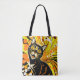 Colorful retro abstract portrait of a black cat for a cat lover in a reuseable tote bag